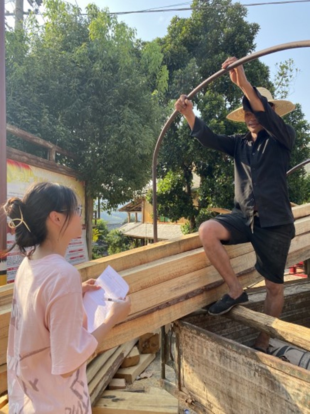 学生与澜沧县老达保乡村音乐小镇的村民互帮互助一起收拾用餐后的桌子以及表演结束后的观众席,通过打扫还原了干净卫生的用餐环境和整洁的观众席。